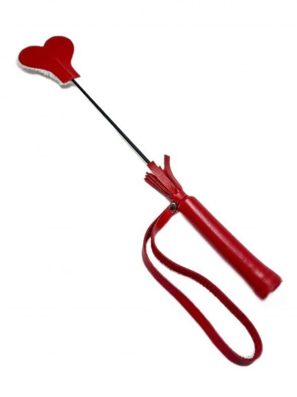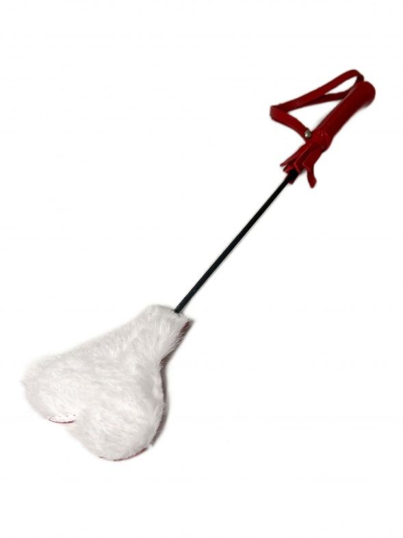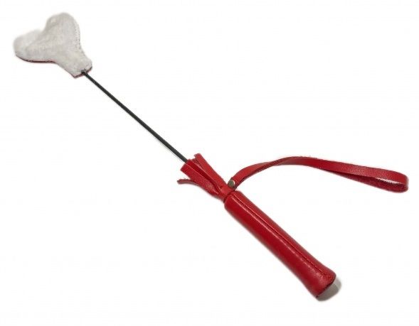 Миниатюрный и очень симпатичный стек из натуральной красной кожи, на конце которого расположен шлепок в виде сердечка. Одна сторона шлепка выполнена из натуральной кожи, а другая из нежнейшего белого эко-меха, невероятно приятного наощупь. Такой дизайн позволит чередовать возбуждающие шлепки кожаной стороной и нежные поглаживания меховой стороной. Для удобства на рукоятке имеется петелька. Этот маленький, но гибкий и яркий стек добавит незабываемых эмоций и ощущений в любовную игру! Длина рукояти - 9 см. Размеры шлепка - 6 х 8 см.