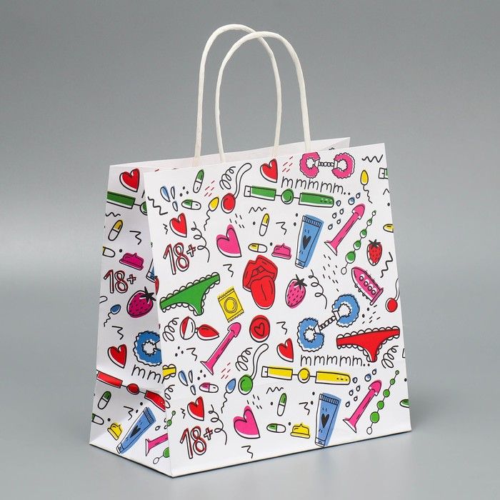 Подарочный крафтовый пакет«18». Размеры - 22×22×11 см.