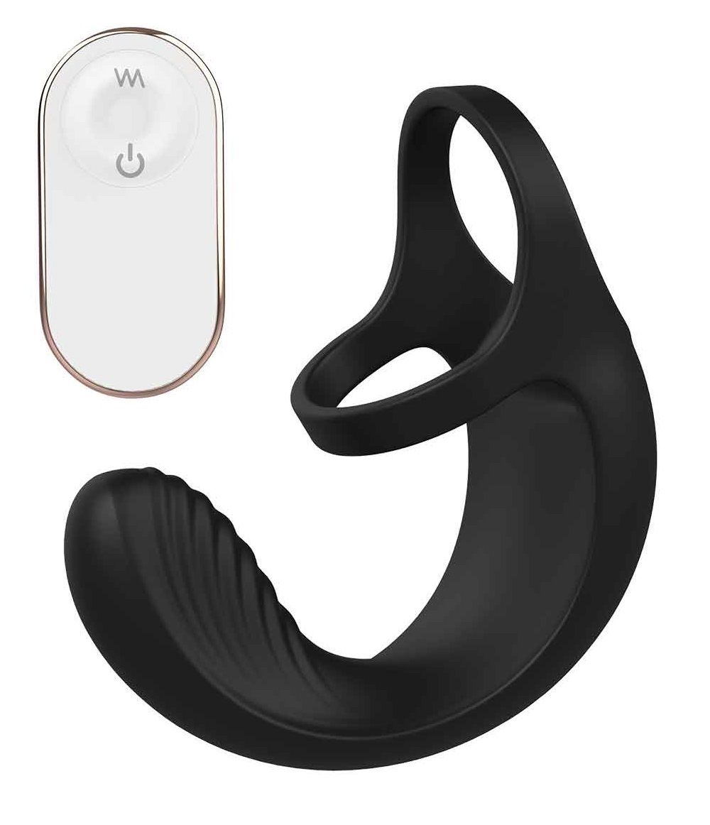 Этот гибкий стимулятор прекрасно подходит для использования во время интеркуляции. Стимулятор проходит вокруг полового члена с помощью растягивающегося кольца. Изогнутая часть уходит под мошонку, между яичками. Эта гибкая часть имеет ребра и вибрирует на промежности в 9 различных ритмах. Этот стимулятор можно использовать в душе или ванне, поскольку он водонепроницаем. Для удобства к нему прилагается беспроводной пульт дистанционного управления для управления вибрациями и магнитный USB-кабель для подзарядки стимулятора.