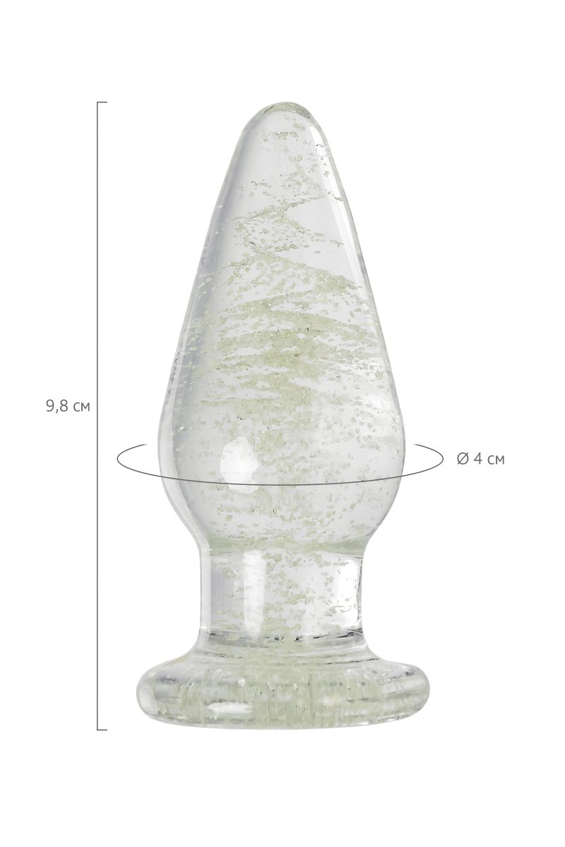 Прозрачная анальная втулка из закаленного стекла содержит флуоресцентные микрочастицы, которые светятся в темноте. Такой необычный дизайн помогает внести в интимные игры разнообразие. Достаточно зарядить игрушку под дневным или искусственным светом, чтобы насладиться ее мерцанием и свечением в темноте. Оптимальный размер, обтекаемая форма конуса и наличие ограничителя делают использование анальной игрушки безопасным.