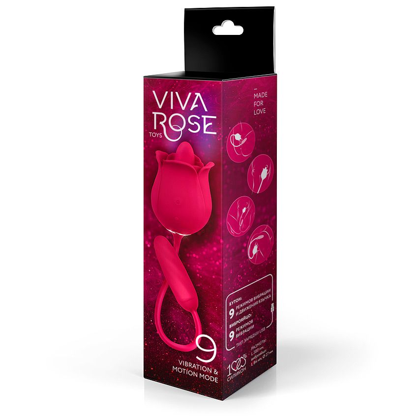 Интимный аксессуар в виде розы вознесёт на вершину блаженства. Чувственный язычок в бутоне нежно ласкает соски, клитор и другие эрогенные зоны с помощью 9 режимов вибрации и движения язычка. Вторая часть секс-игрушки (виброяйцо), стимулирует влагалище и анальное отверстие с помощью смены 9 виброрежимов. Вибрация ощущается и в виброяйце, и в соединительном шнурке. Язычок в бутоне и виброяйцо могут работать одновременно или по отдельности. Вкл./выкл. работы язычка в бутоне — нажать и 3 сек. удерживать соответствующую кнопку на корпусе изделия. Должен загореться/погаснуть световой индикатор. Переключение режимов вибрации язычка — краткое нажатие той же кнопки. Вкл./выкл. вибрации в виброяйце — нажать и 3 сек. удерживать соответствующую кнопку на корпусе изделия. Должен загореться/погаснуть световой индикатор. Переключение виброрежимов — краткое нажатие той же кнопки. Длина виброяйца - 8,4 см., диаметр - 2,8 см.