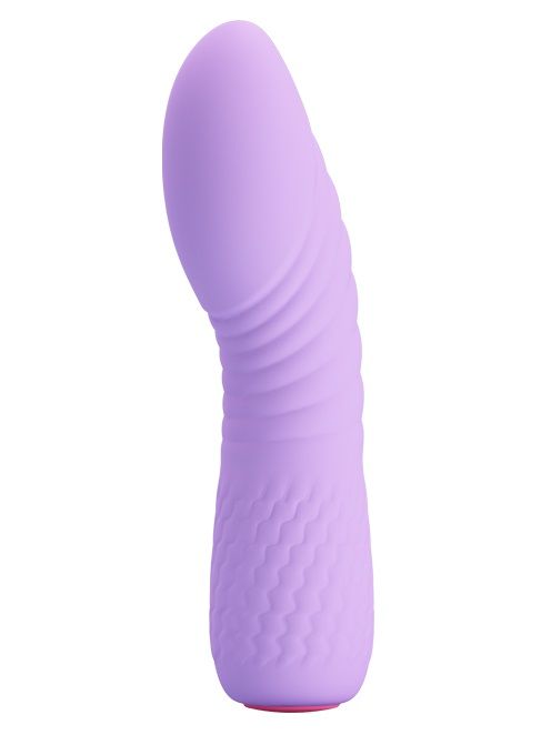 Сиреневый перезаряжаемый мини-вибратор Lina. 12 режимов вибрации. Чуть изогнутый ствол для лучшего воздействия.
